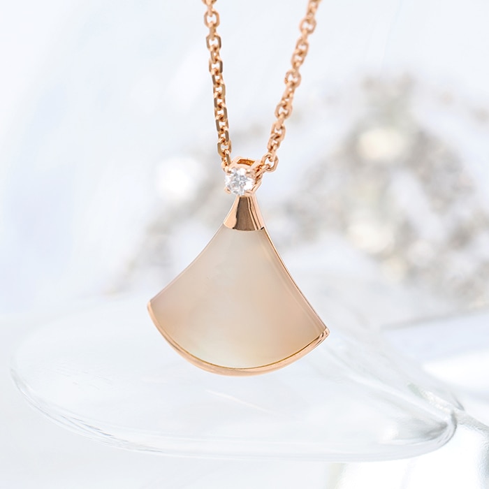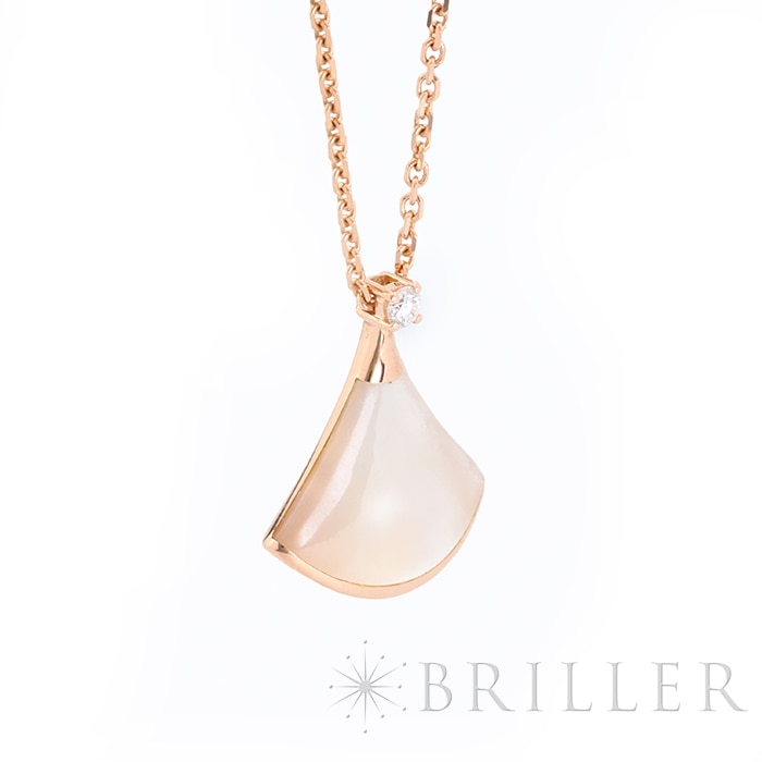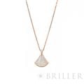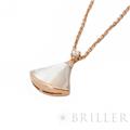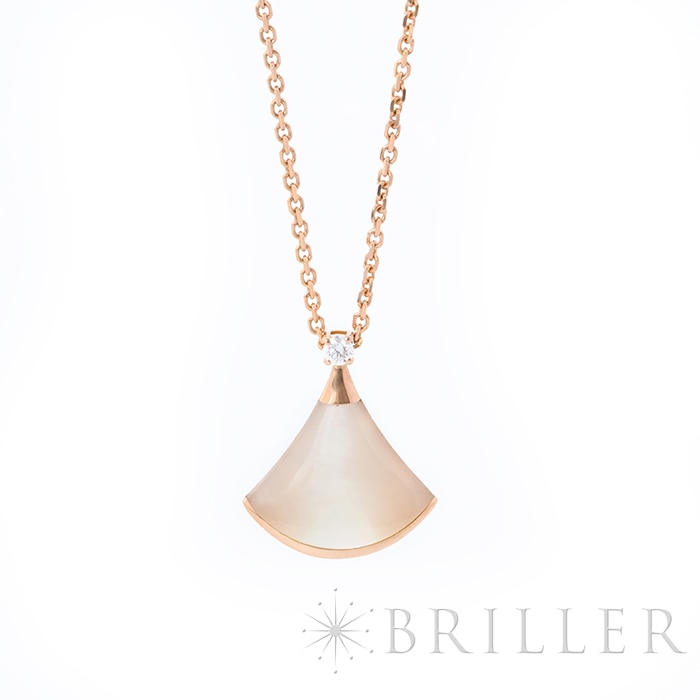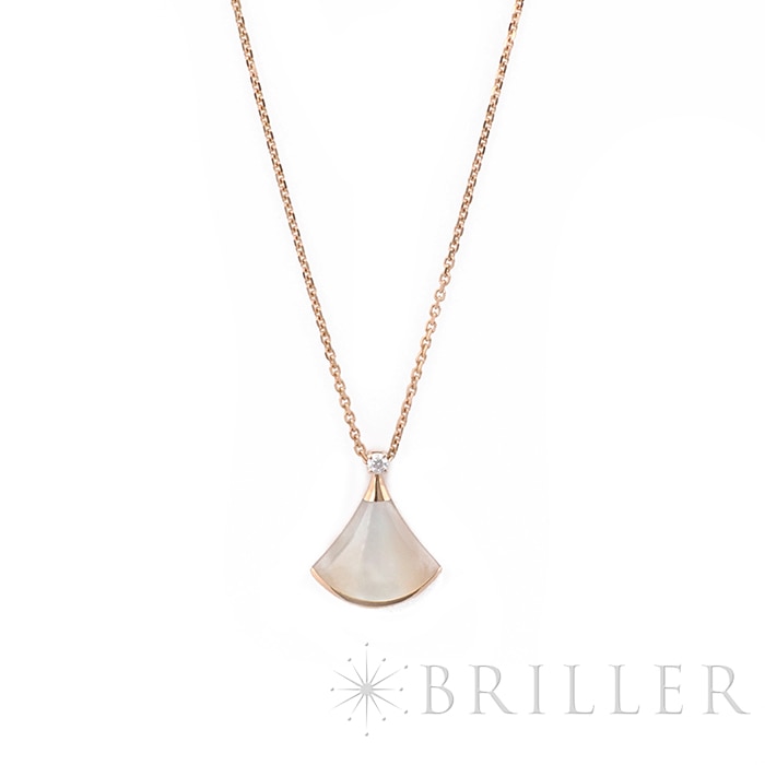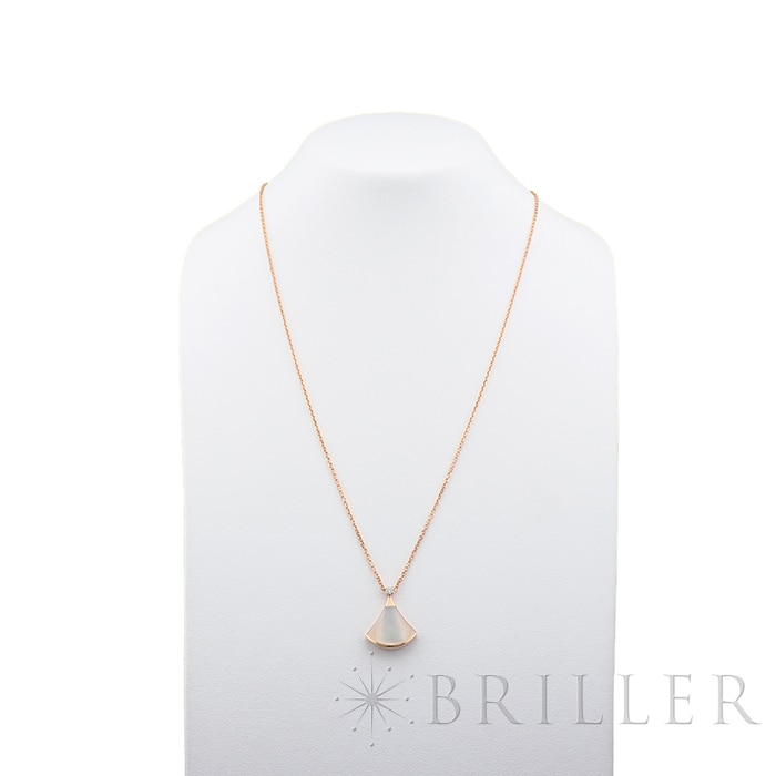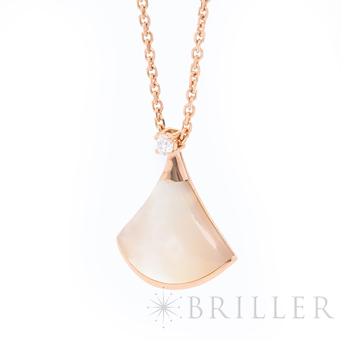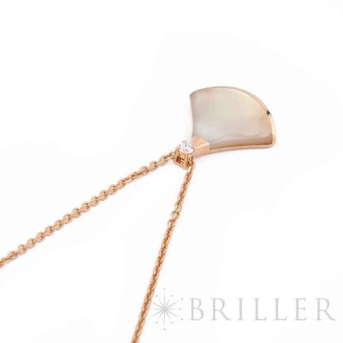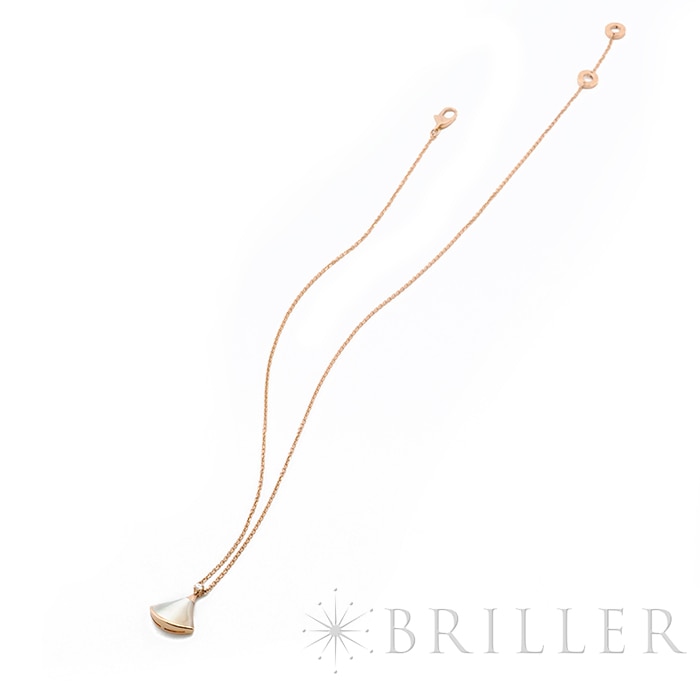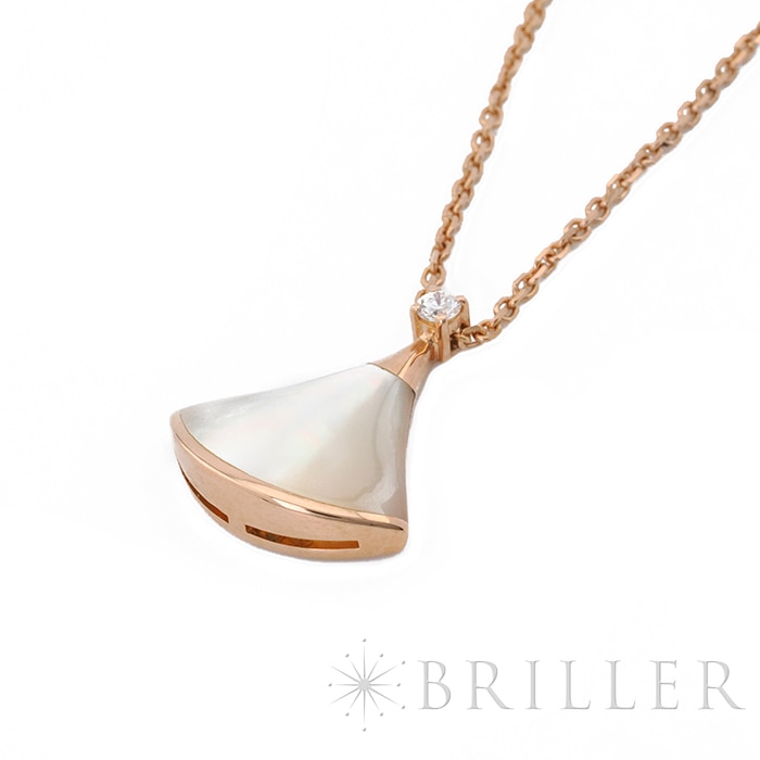 ブルガリ ディーヴァドリーム ネックレス マザーオブパール ピンクゴールド ダイヤモンド 350581 BVLGARIブルガリの「ディーヴァ ドリーム」ネックレス 。古代ローマのモザイク装飾から着想を得た優美な扇形モチーフが特徴のコレクションです。ピンクゴールドにマザーオブパールを組み合わせ、柔らかな光沢と女性らしい雰囲気を演出。さらにダイヤモンドの輝きが上品な華やかさを添え、胸元を美しく彩ります。エレガントでありながら日常にも取り入れやすく、装いに洗練された印象を与えるジュエリーです。証明書日付 2020年11月 中古のお品物ではございますが、ご着用時に気になる傷等はございません。